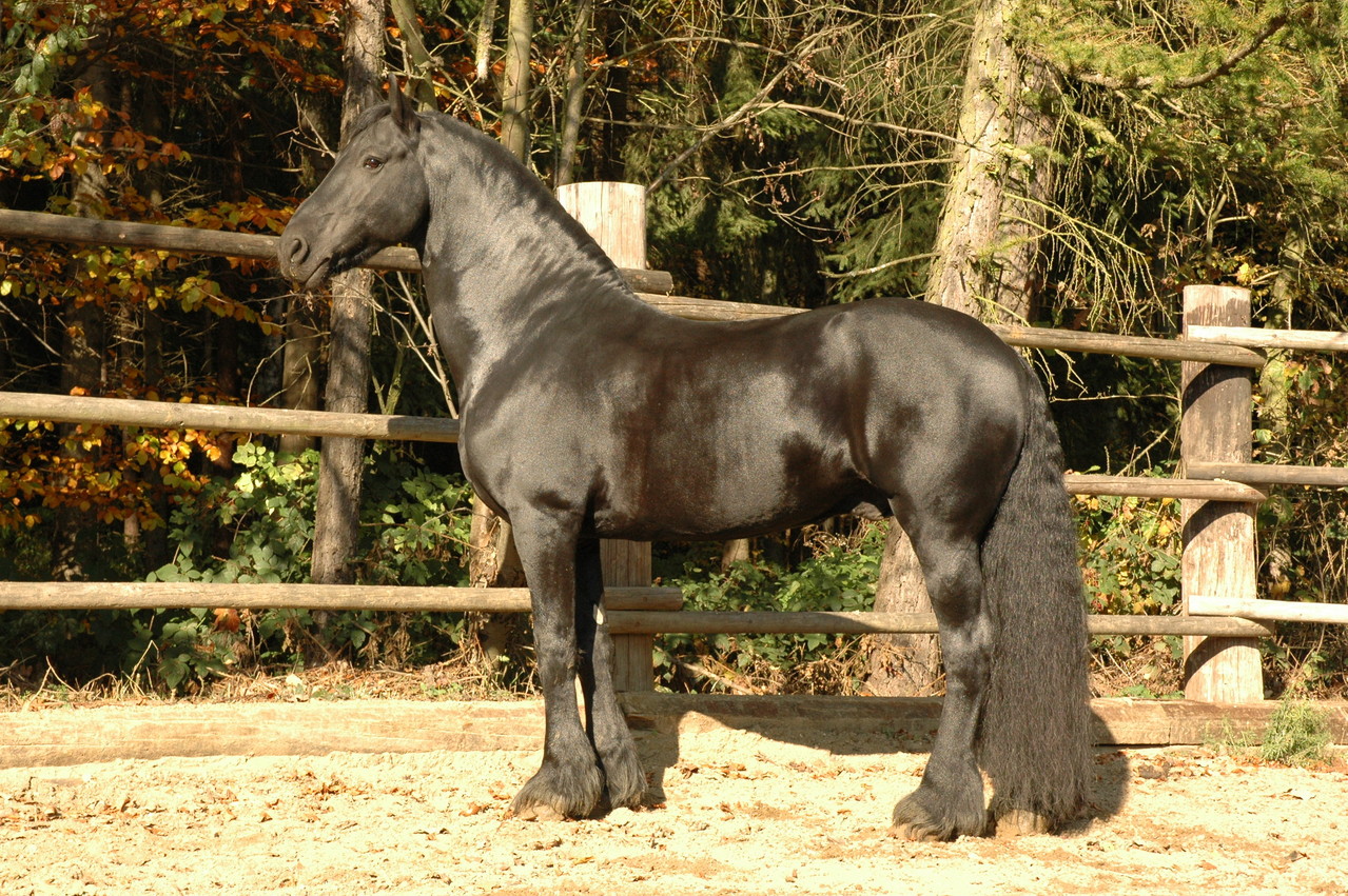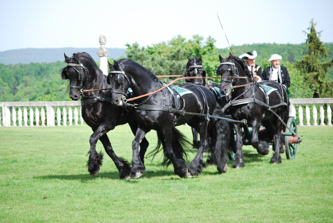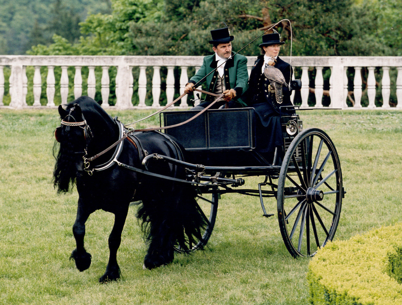 Mein Vater bildet Pferde vor der Kutsche aus. Auf die Frage mit welchem unserer Friesen ein junges Pferd eingespannt werden soll antwortete er erst